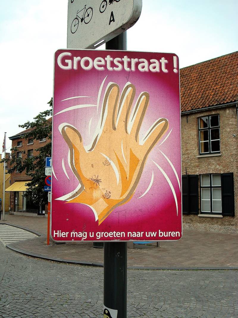 Op vakantie in België viel het op dat er veel straten de Groetstraat heetten. Maar zoveel, dat moest iets meer betekenen. In het hotel werd uitgelegd dat het een 'landelijke' (Vlaams?) actie was om de onderlinge samenhorigheid te vergroten. De slogan "Hier mag u groeten naar uw buren" is lange tijd heel populair geweest. Dus, voor de duidelijkheid, geen officiële straatnaam, maar wel een die met trots gedragen werd (en wordt …?).